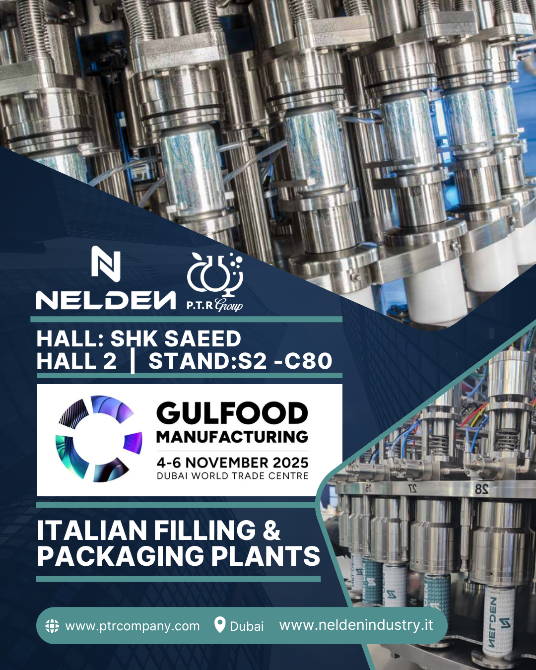 نوآوری و مهندسی ایتالیایی در خطوط نوشیدنی شرکت نلدن ایتالیا . در عرفه شرکت نلدن با ارائهی نسل جدید ماشینآلات و خطوط تولید نوشیدنی در نمایشگاه گالفود دبی ۲۰۲۵ منتظر دیدار شما هستیم.